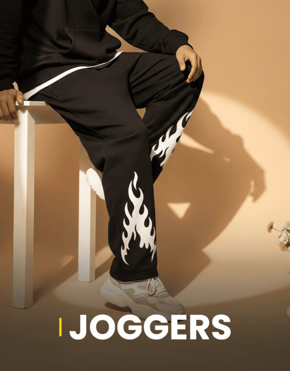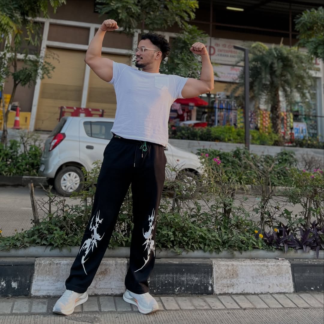 Benrren Black Oversized Baggy Jogger for Men & Women โ 240 GSM 100% Cotton Bio-Wash, GenZ Streetwear, Unisex Printed Pants