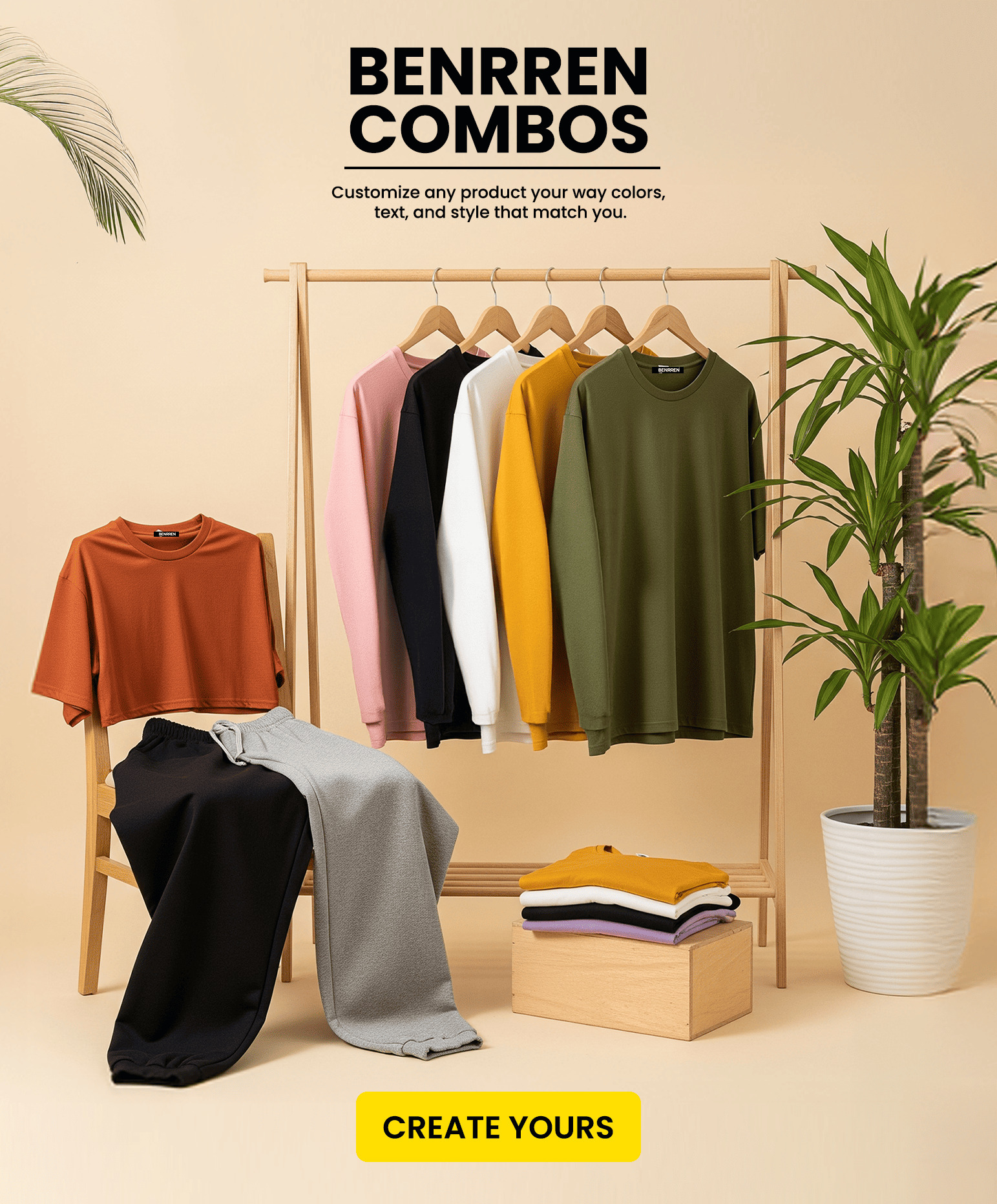 Benrren GenZ Streetwear Combo โ Mustard Yellow Full Sleeve T-Shirt + Black Printed Jogger | 100% Cotton | Oversized Baggy Fit