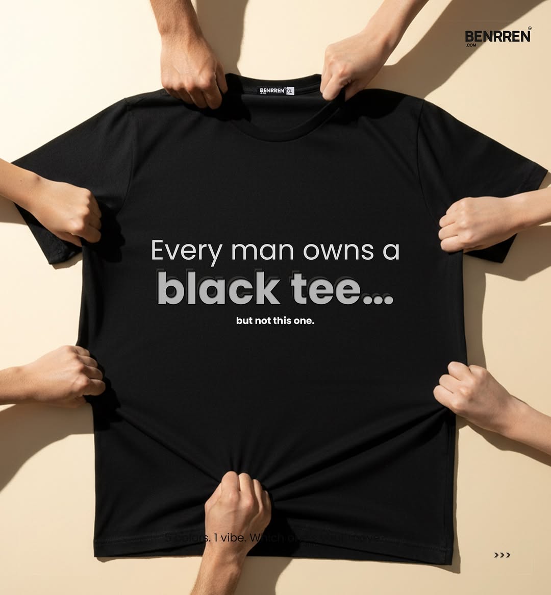 Benrren Menโs Premium Black Joggers โ 240 GSM 100% Cotton, Relaxed Fit with Single White Side Strip