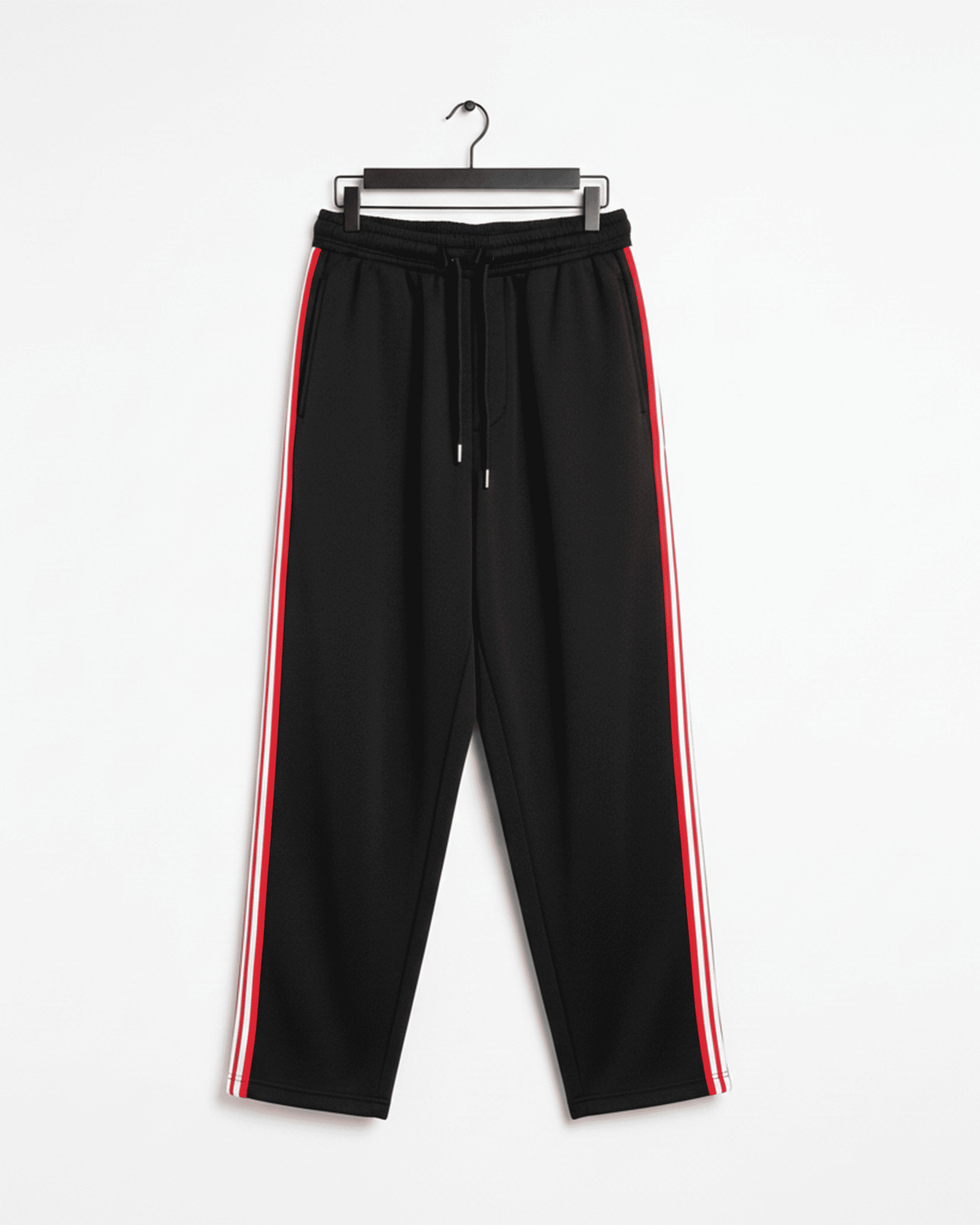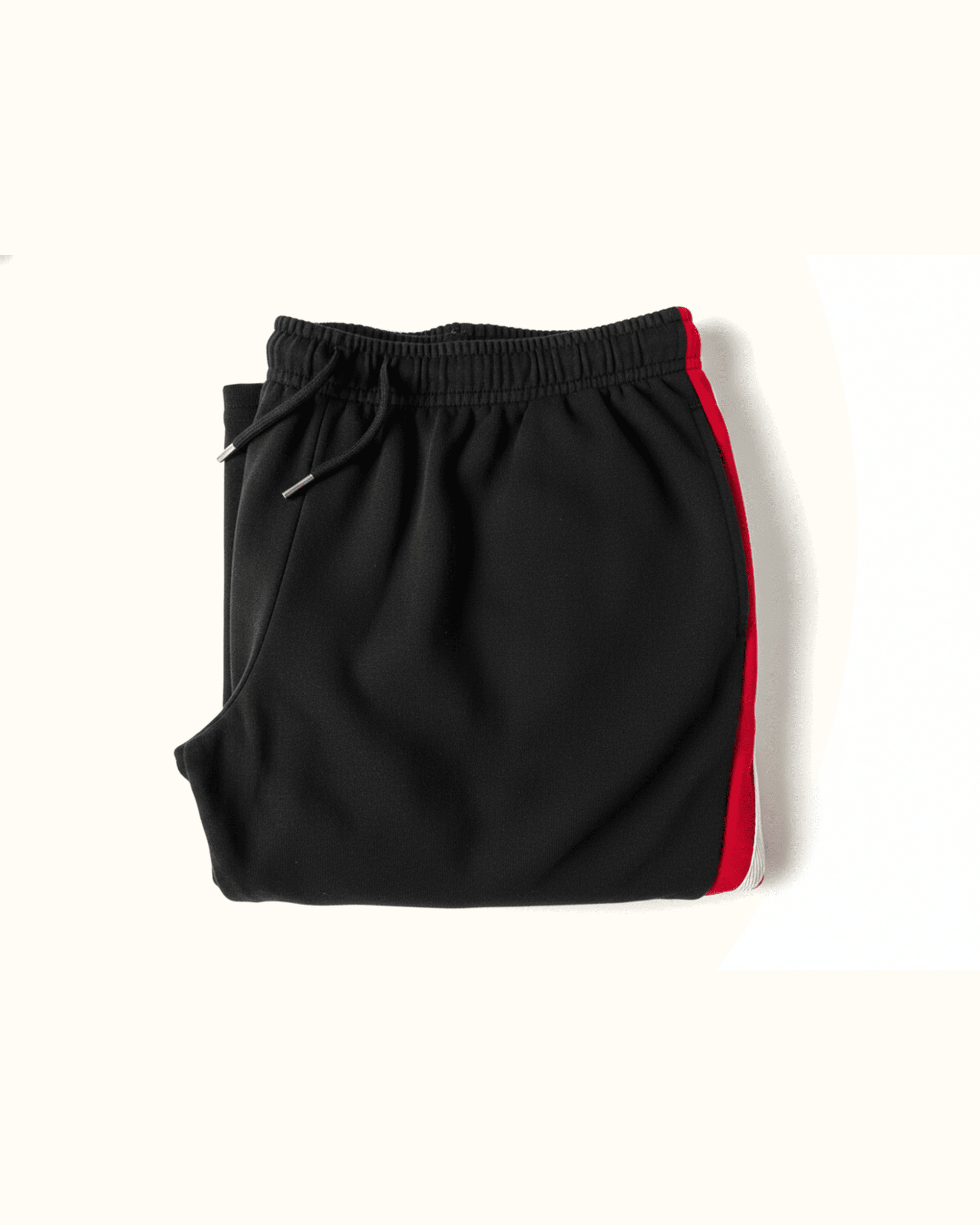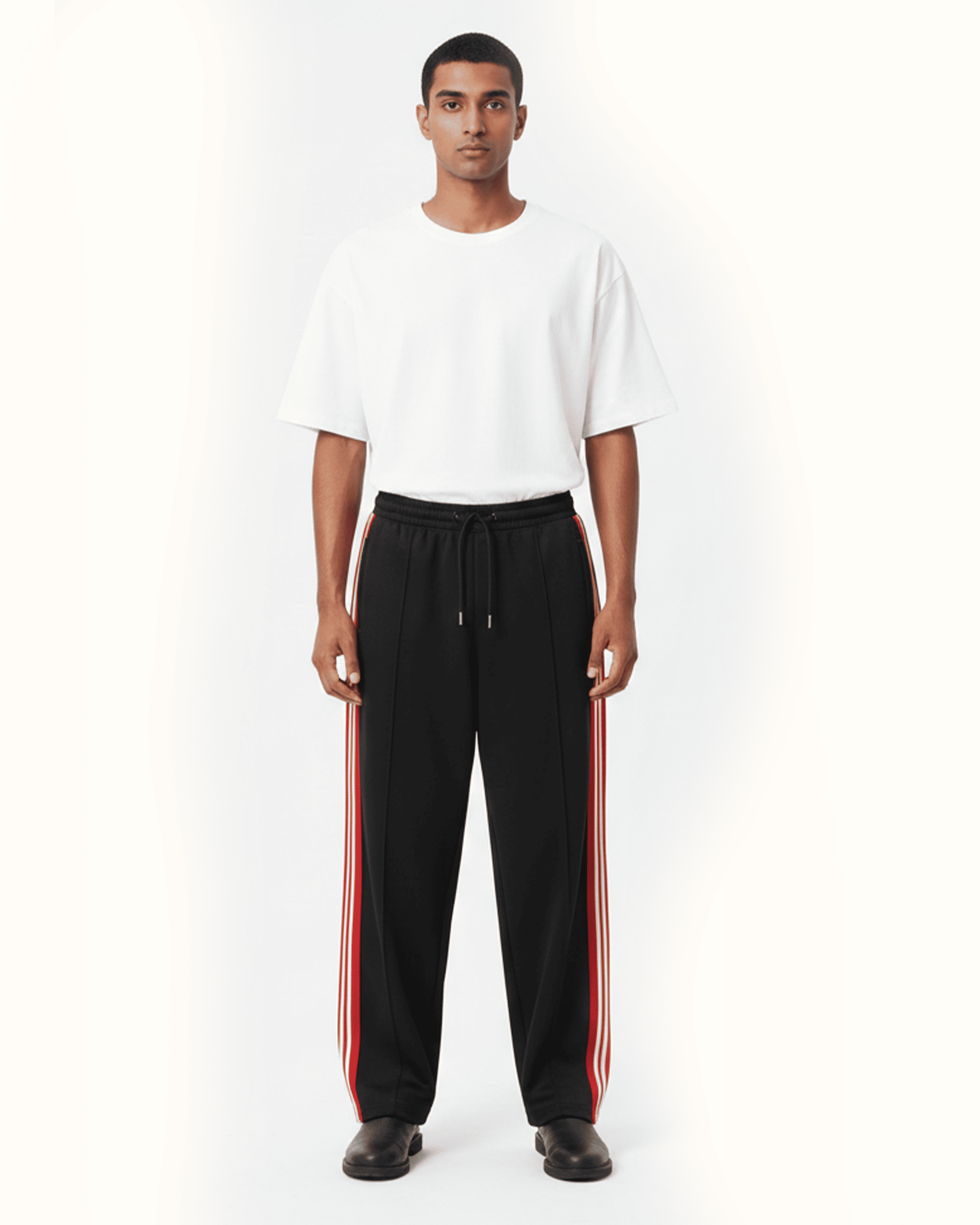 Benrren Men’s Oversized Red Side-Stripe Joggers | 240 GSM 100% Cotton | Straight Fit